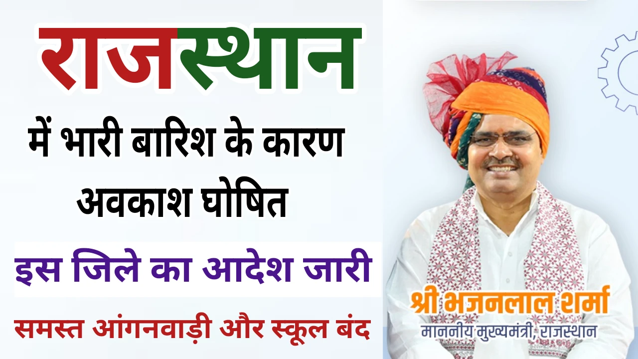 राजस्थान में लगातार हो रही भारी बारिश के चलते प्रशासन अलर्ट मोड पर आ गया है। झुंझुनूं जिले में हालात को देखते हुए जिला कलेक्टर ने बड़ा फैसला लेते हुए 1 सितंबर 2025 (सोमवार) को सभी स्कूलों और आंगनबाड़ियों में अवकाश घोषित कर दिया है। यह आदेश जिले के सभी राजकीय और गैर-राजकीय विद्यालयों (कक्षा 1 से 12 तक) के लिए लागू होगा।